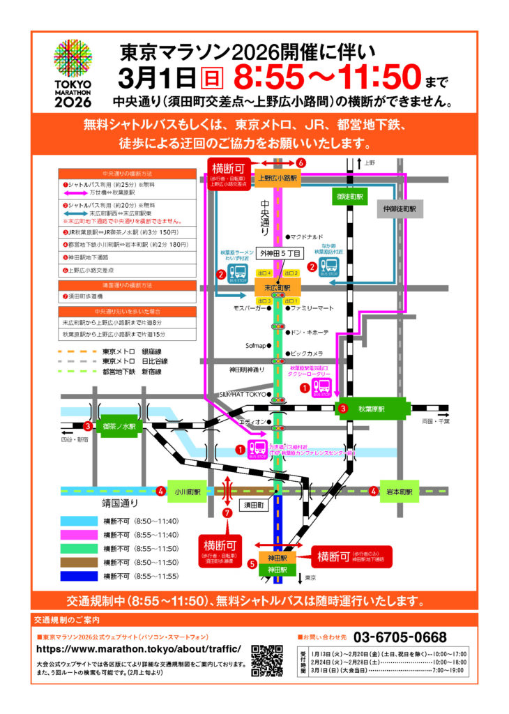 【お知らせ】3月1日「東京マラソン2026」開催に伴い、中央通りで大幅な交通規制があります