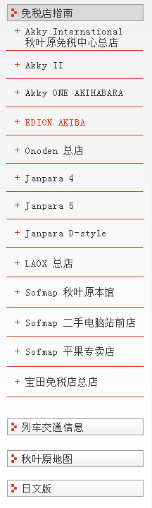 | 地址:东京都千代田区外神田1-2-9 邮编:101-0021 电话号码:03-3257-1100 营业时间:10:00~20:00 休息时间:无休 可使用语言:英文、中文 URL:http://my.edion.jp/pc/ |