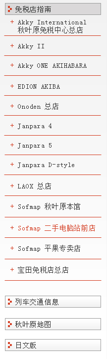 | 地址:东京都千代田区外神田1-16-9 朝风2号馆楼1F 邮编:101-0021 电话号码:03-3253-0505 营业时间:11:00~20:00 收买购买中心的接待时间为闭馆前一小时。 休息时间:年中无休 可使用语言:英文、中文 URL:http://www.sofmap.com/tenpo/topics/exec/_/id=shop/-/sid=akb-ekimae |